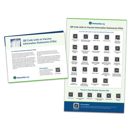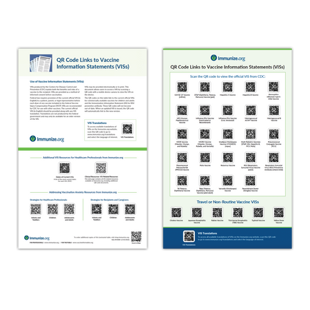 - Bonus content: the reverse side of the QR code poster includes links to Immunize.org’s “Addressing Vaccination Anxiety” patient handouts and additional VIS resources.